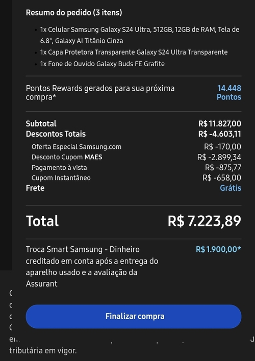 Na epoca eu fiz essa parada ai. Recebi os 1000 de desconto num a03s velho que tinha na empresa e paguei R$4990,00 +- no S24 ultra , ai passei meu s21 com linha rosa para atendimento da minha emprsa hehe. Foi so alegria