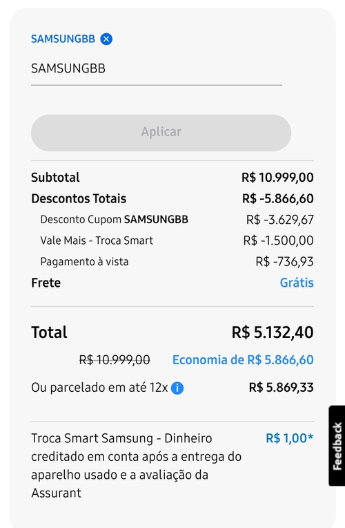 E o cupom "Samsungbb" também 😔