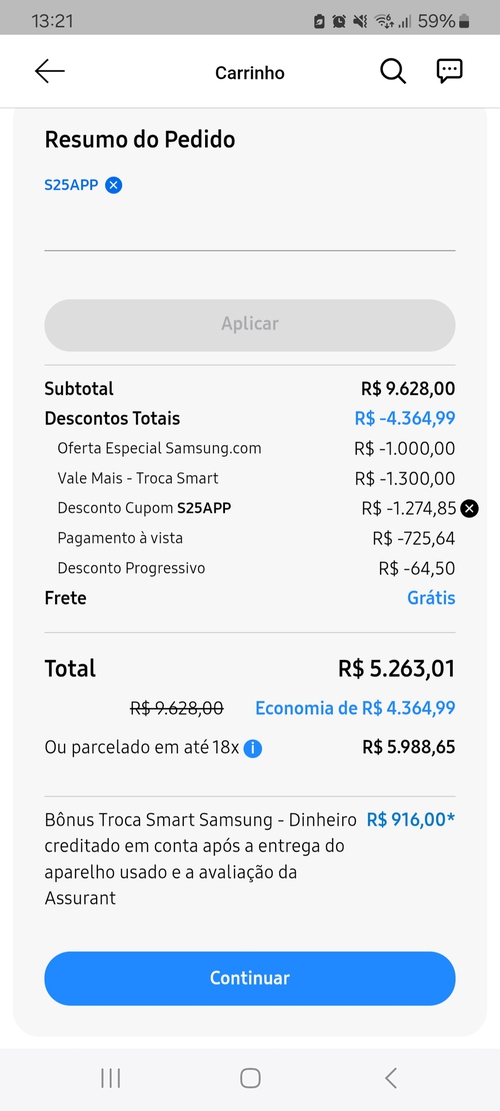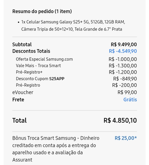 Não tô conseguindo chegar nesse preço de jeito nenhum, s25app não funciona aqui