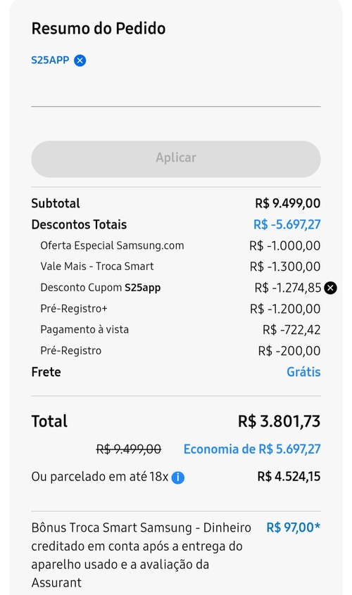 Comprei o ultra. Para conseguir todos os descontos tive que falar pelo chat do app Samsung Shop.