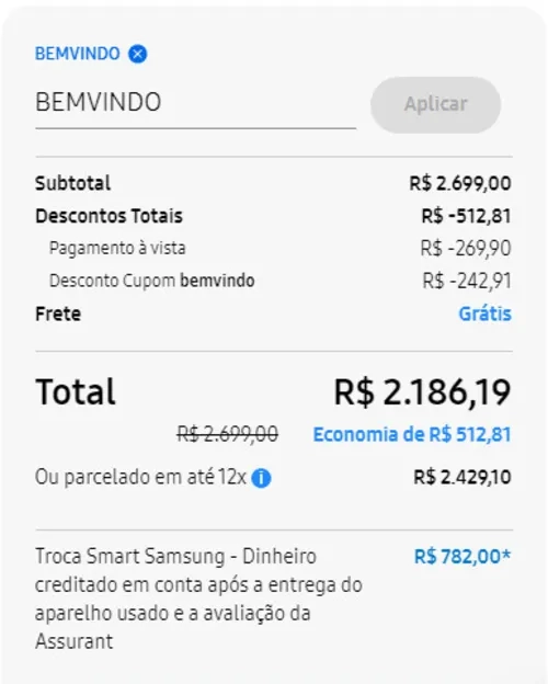 a troca smart some no carrinho