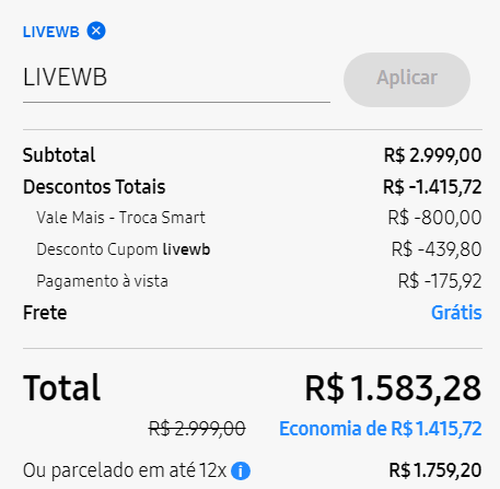 Da pra juntar com Samsung rewards e parcelar 12x sem juros