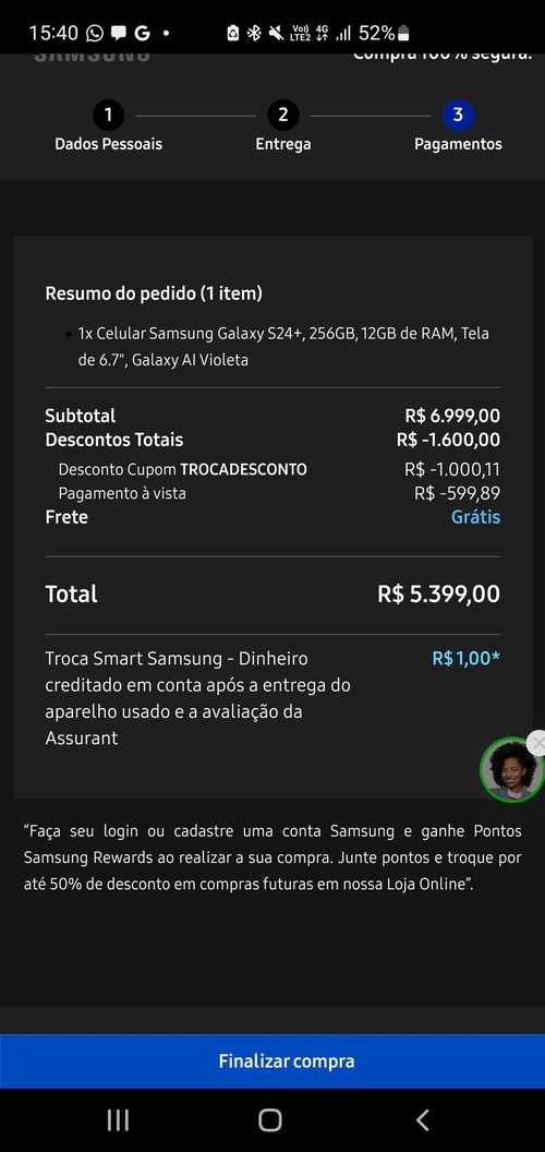 @Pikachu Poderia tirar uma dúvida minha? Esse valor de R$ 3.600 aparecerá no momento do pagamento ou viria o tal "desconto de R$ 1.900" para fechar nesse valor? Não entendi muito bem... poderia me ajudar? #OBS: Nunca comprei diretamente no site ou app da Samsung.