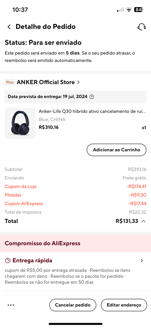 Naqueles dias do cupom MEGA40, a Anker tava dando um cupom de 3 dólares pra quem seguisse a página e 8 dólares de desconto exclusivo pra esse fone. Saudades.
