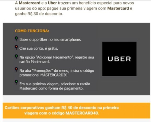 Uber - Ganhe até 40 reais pagando com Mastercard (Leia a descrição)