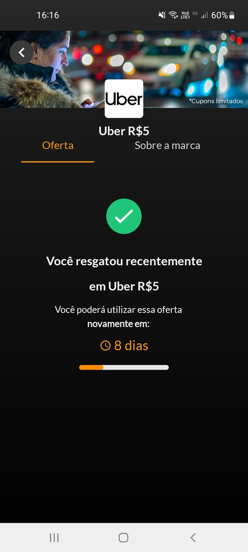 Primeira vez que eu consigo resgatar Uber nesse app.