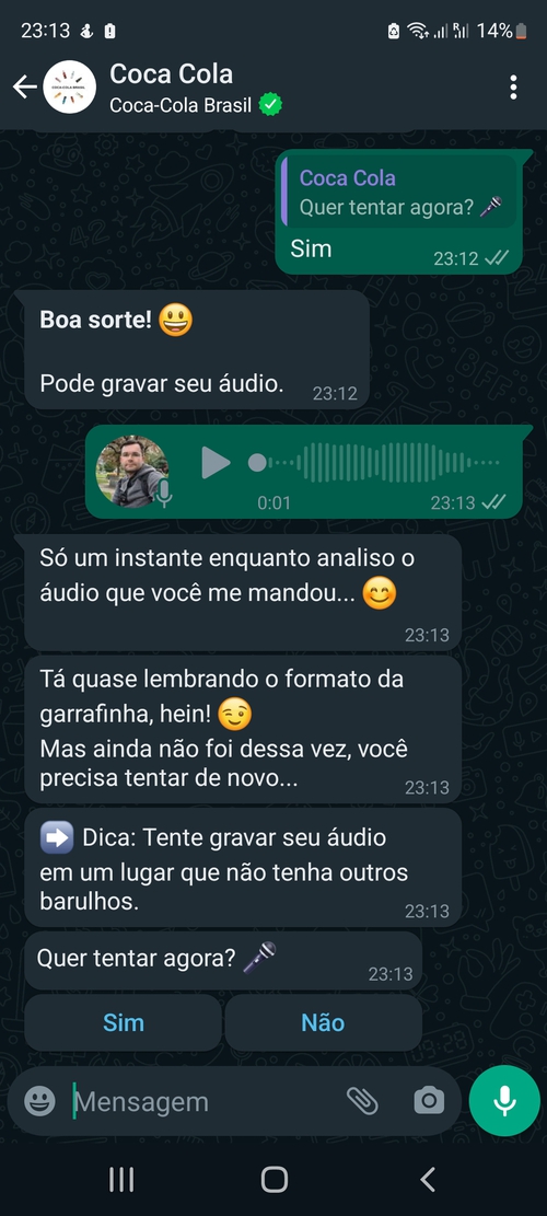 Imagino o pessoal da coca cola ouvindo os áudios da galera e morrendo de dar risada.