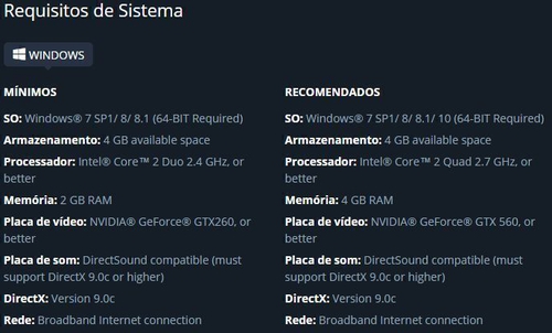 - É necessário um PC com placa de vídeo integrada para rodar o jogo;