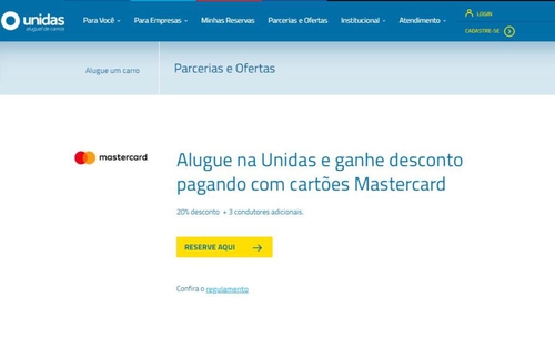Senhores, venho a dias procurando um carro pra locar, e achei essa promoção muito boa, basta apenas ter um cartão de crédito Mastercard nominal da pessoa que esta fazendo a reserva, e ganha 20% de desconto + 3 condutores adicionais gratuitos, lembrando que cada condutor é R$6,90 dia.