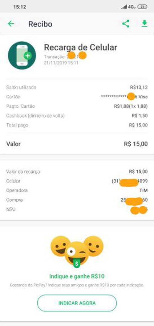Topzera esse PicPay só esse mês já tenho mais de 200 em cashback :-)