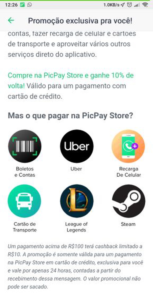 [Usuários Selecionados] 10% de CashBack no PicPay