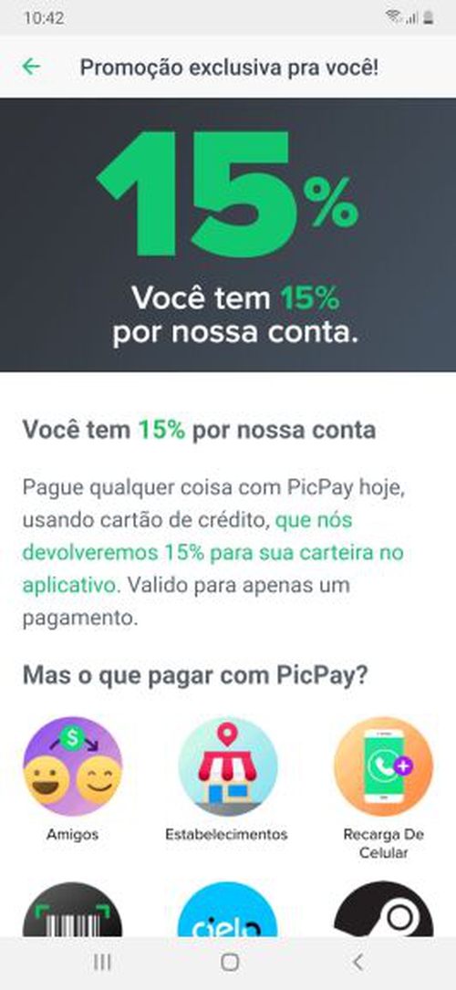 [Usuários Selecionados] 15% OFF em Pagamentos pelo Picpay