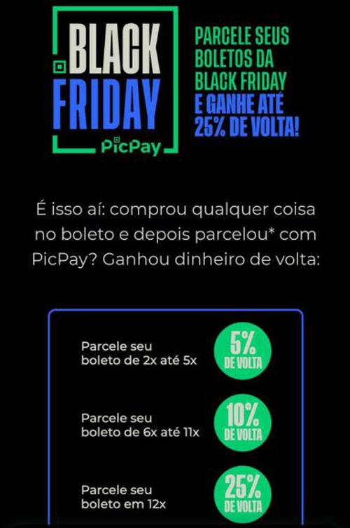 [Usuários Selecionados] Até 25% de cashback no boleto no PicPay