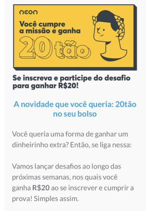 [Usuários Selecionados] Desafios Neon de R$ 20