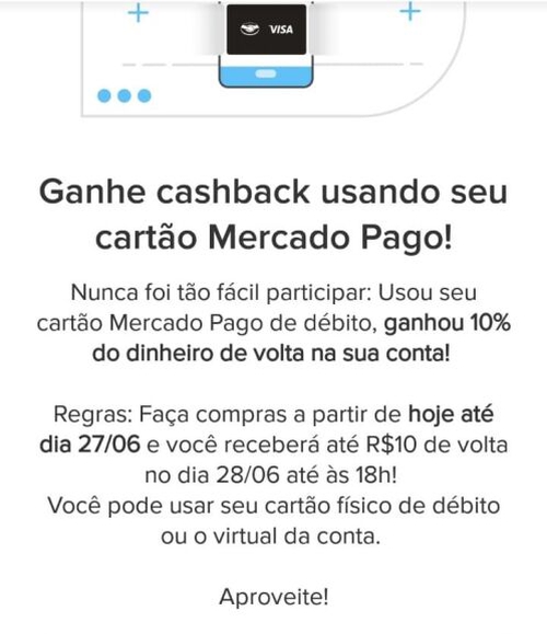 Nunca foi tão fácil participar: Usou seu cartão Mercado Pago de débito, ganhou 10% do dinheiro de volta na sua conta!