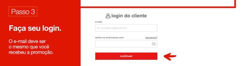 2- Faça login na Americanas.com com o mesmo e-mail que recebeu a oferta;