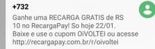 Inativo ddd 27, tbm recebi por mensagem. Recarga pay só me decepciona...