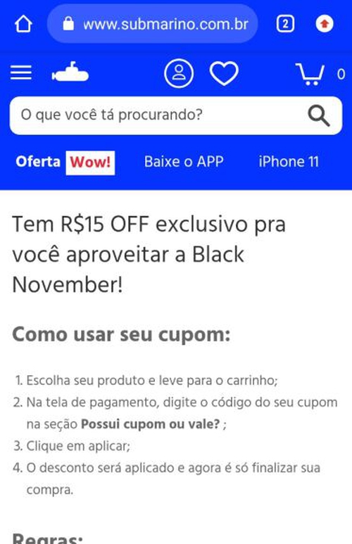 [usuários selecionados] R$15 OFF exclusivo pra aproveitar a Black November!