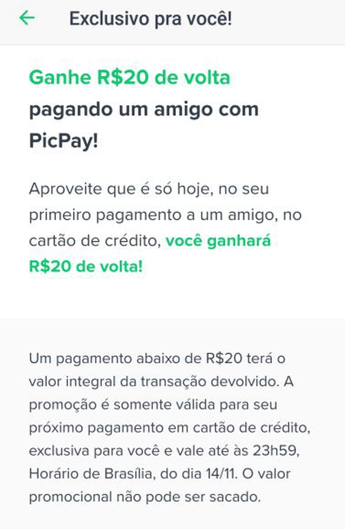 Quem me dera conseguir alguma promoção do picpay, está difícil ultimamente
