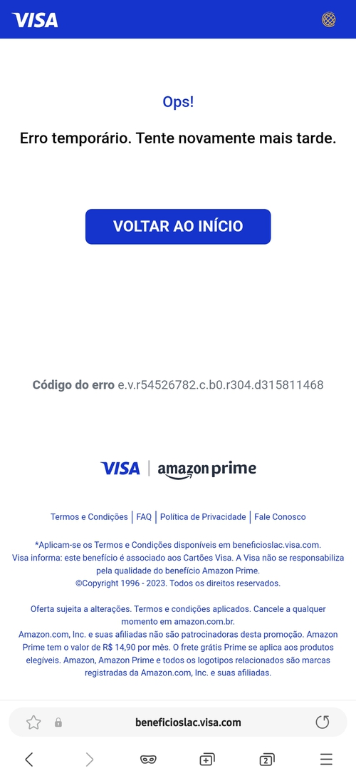 aqui ativou no site da visa, mas quando logo na amazon dá conta inválida pra promoção...
