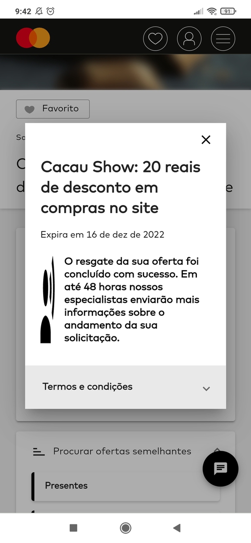 Vale presente de R$20 na Cacau Show - Mastercard Viagens e Concierge