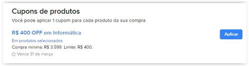 Vale R$ 400 OFF em Notebooks e PC Gamers no Mercado Livres