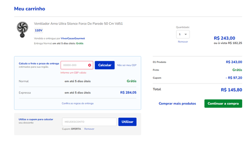 eu boletei mais cedo para garantir e fiz o pagamento, agora é esperar para ver se essa loja vai enviar o ventilador ou vão cancelar a compra.