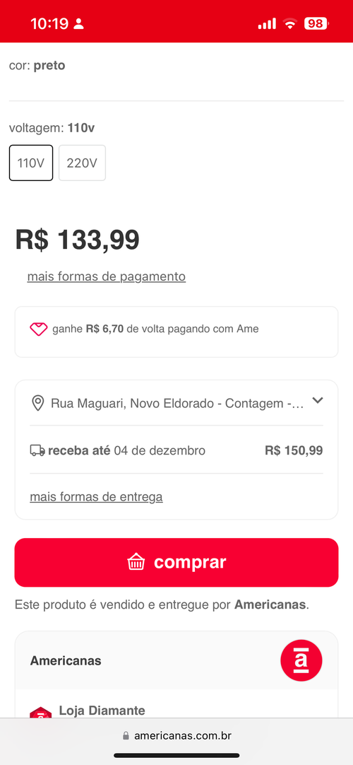 Americanas é uma piada. 128 de frete, aqui no interior de Sp. Mico.