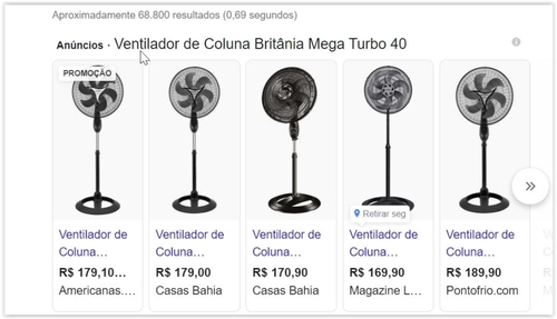 Ventilador de Coluna Britânia Mega Turbo 40 Preto | R$ 143