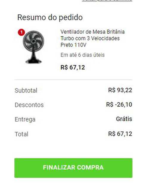 Ventilador de Mesa Britânia Turbo com 3 Velocidades Preto 110V | R$68