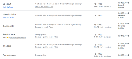 - Menor preço encontrado pelo Google Shopping