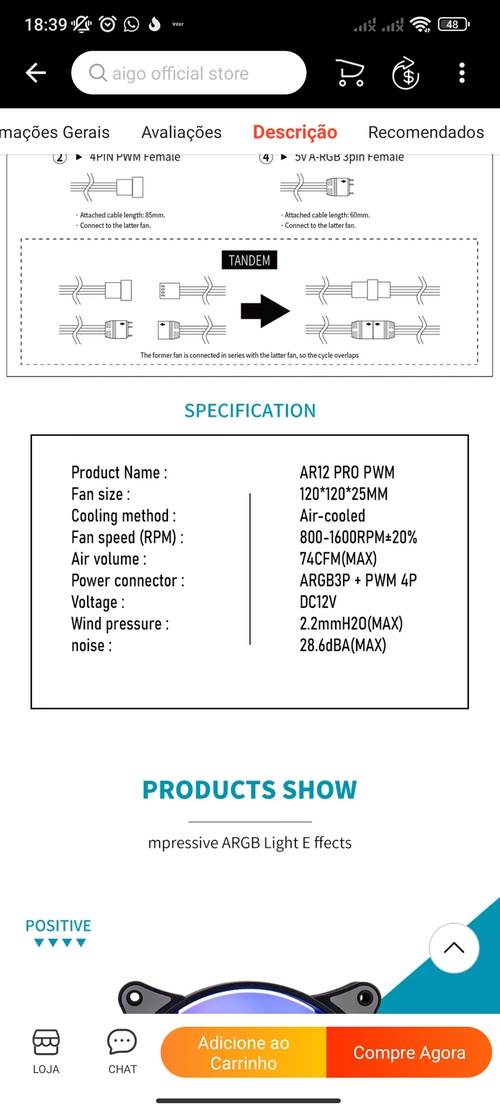 Ventilador de refrigeração Aigo ar12pro 120mm rgb