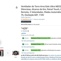 Ventilador Torre Arno Eole Ultra NEO2 110V com Controle, Timer e Touch