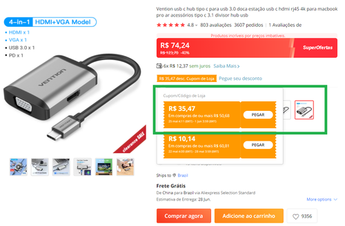 Consegui comprar esse 4 em 1 (usb-c p/ hdmi e vga, etc) por R$ 38,77, tentem ai usando o cupom da loja!