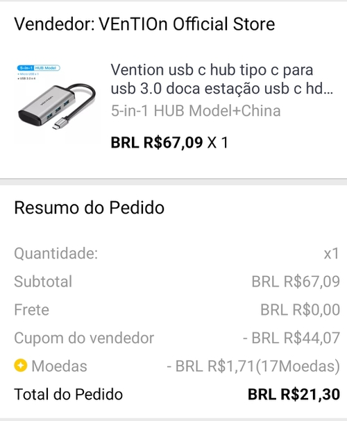 Esse é vendido pela loja oficial da Vention. O que teve o cancelamento em massa era vendido por outro vendedor: "VEnTIOn Franchised Store".