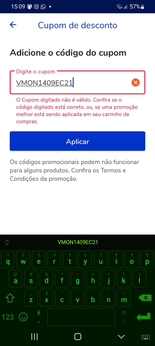 Acho que cupom é individual tem de ir na aba VIP do APP e resgatar