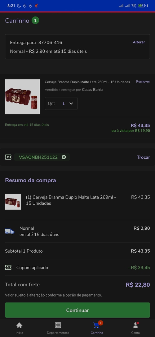 Promoçao falsa enganadora nao funciona a cerveja custa 43 reais e cupom eh falso