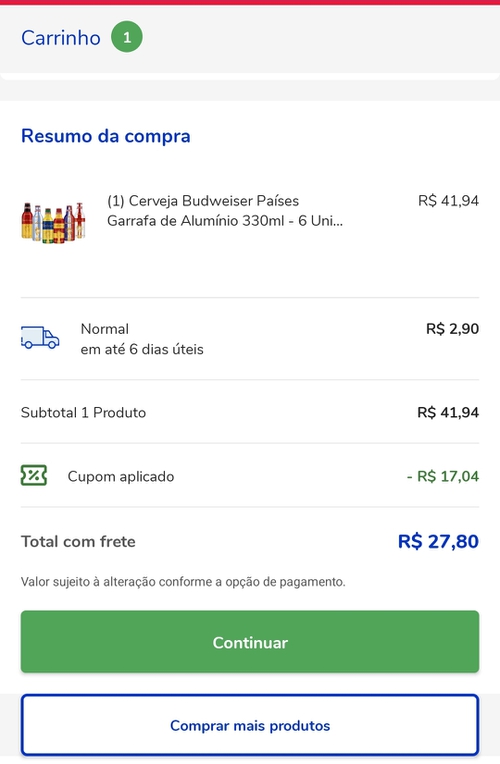 NO APP vá em : CONTA > CLIENTE VIP> CUPONS ONLINE> selecionar a aba que aparece as garafas > aí você copia o cupom e aplica no compraAqui pra BH frete grátis