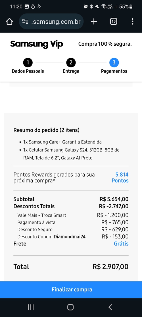 Alguém pode me dizer o preço de um S24 plus com a troca smart e o cupom de 5% mensal (se tiver alguma diferença dele parcelado fala também)