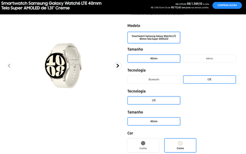 Modelo Galaxy Watch 6 BT 44mm ta saído por R$ 1.196,14 (só acrescentar o cupom vip do mês), em 12x sem juros, sai por R$ 99,67x12.