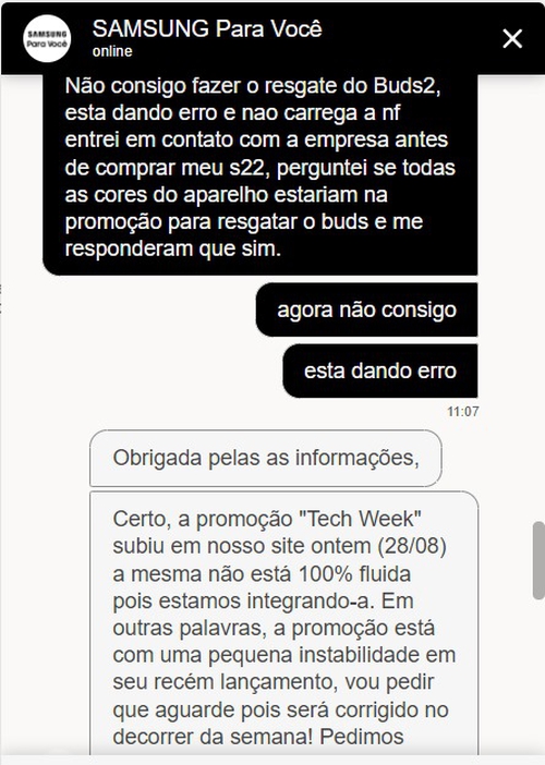 Tentei resgatar o buds hoje não tá indo o site da Samsung tá zuado pra variar. Atendente falou para tentar amanhã