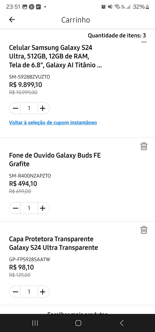 Alguém que tem o vip pode me dizer o valor do s23 ultra de 512? ( sem o desconto de 5% e sem o desconto de 499,00)