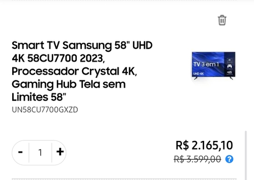 [Vip] Smart TV Samsung 58" UHD 4K 58CU7700 2023, Processador Crystal 4K, Gaming Hub Tela sem Limites