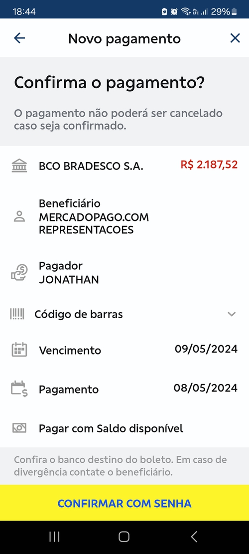 No boleto aparece Mercado Pago, pode isso Arnaldo?