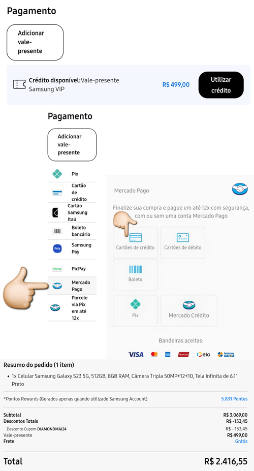 Já tentei pelo notebook e pelo celular, mas por algum motivo não consigo ser encaminhado ou pagar pelo MP, conforme informado na promoção. Clico e não acontece nada, nem carrega algo.
