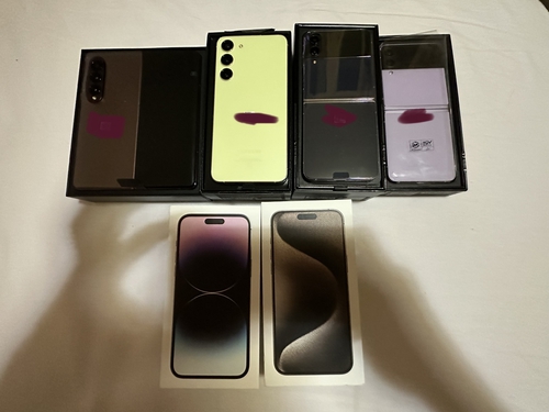 Minhas aquisições!Tenho S23 Plus 512GB verde lima com o seguro Samsung care+ zerado,Z Flip4 beespoke Azul com prata com Samsung care + zerado, Z Fold4 zerado vinho, Z Flip3 zerado roxinho e IPhone 14 Pro Max roxo profundo quase zero semi novo e iPhone 15 Pro Max na cor exclusiva natural titânio lacrado,faltou o iPhone 14 Pro Dourado que não está na foto zero.