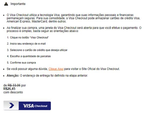 Pagamento com Visa Checkout (apenas cartões bandeira Visa)