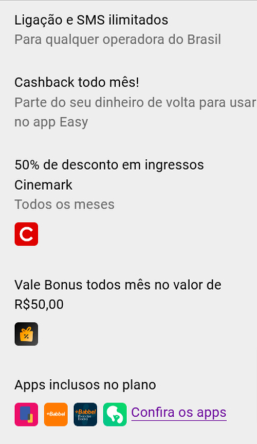 VIVO EASY PRIME - 12GB + R$10 DE CASHBACK + R$50 NO VALE BONUS TODO MÊS