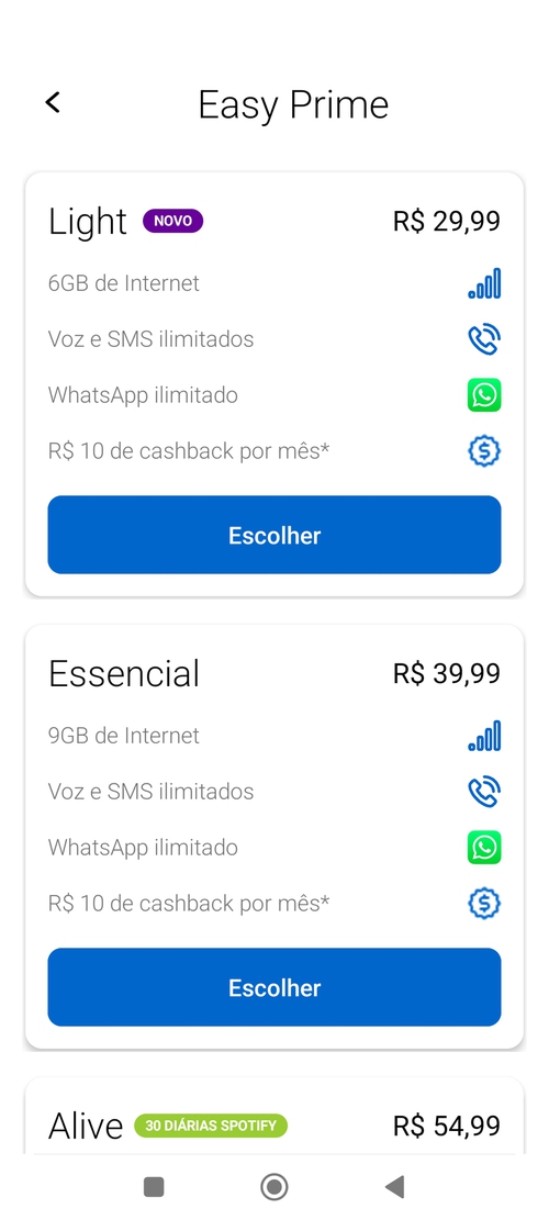 Engraçado que nos Termos e Condições, consta que o Easy Prime Light tem 7GB de Internet, e não 6GB, como mostra no app