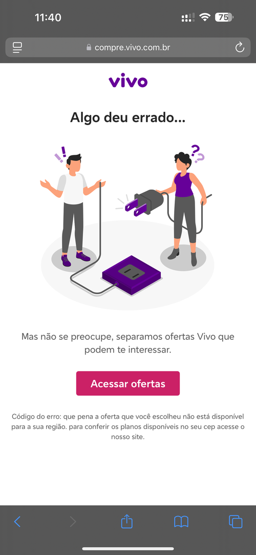 Código do erro: que pena a oferta que você escolheu não está disponível para a sua região. para conferir os planos disponíveis no seu cep acesse o nosso site.